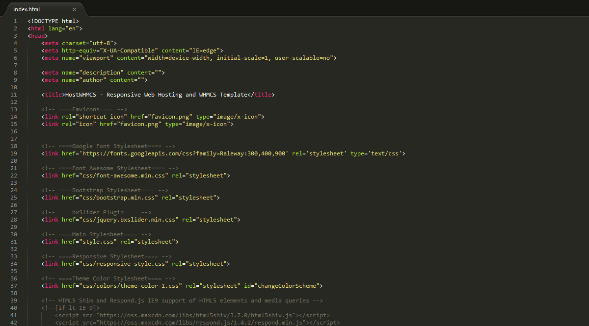 The "HostWHMCS" template is a responsive HTML template based on Bootstrap 3.3.7. The structure based on a flexible grid that lets you change HTML pages quickly and logically with a nestable system.